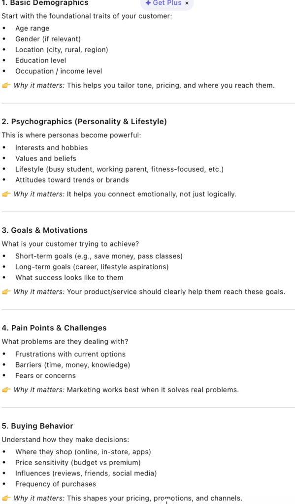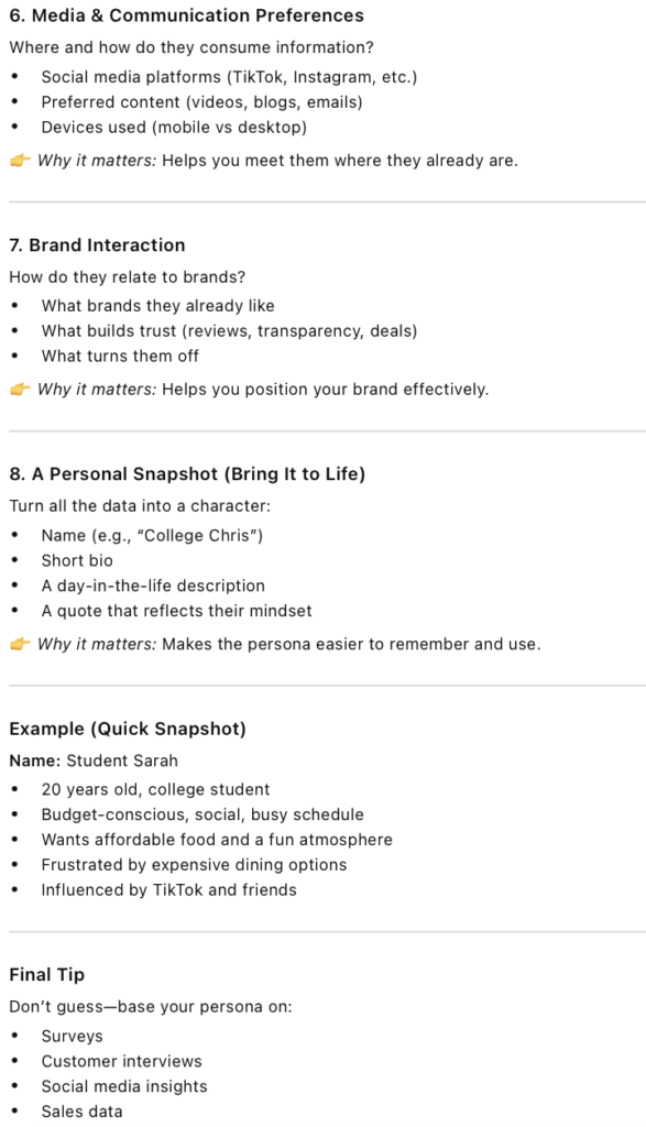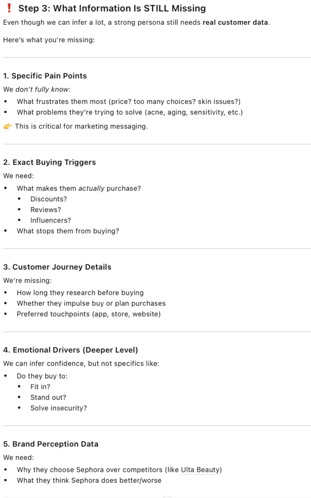 • This is the information ChatGPT said it still needed to create a good customer persona: